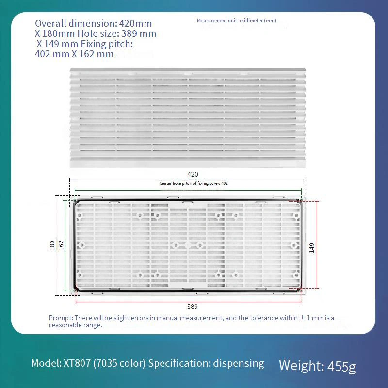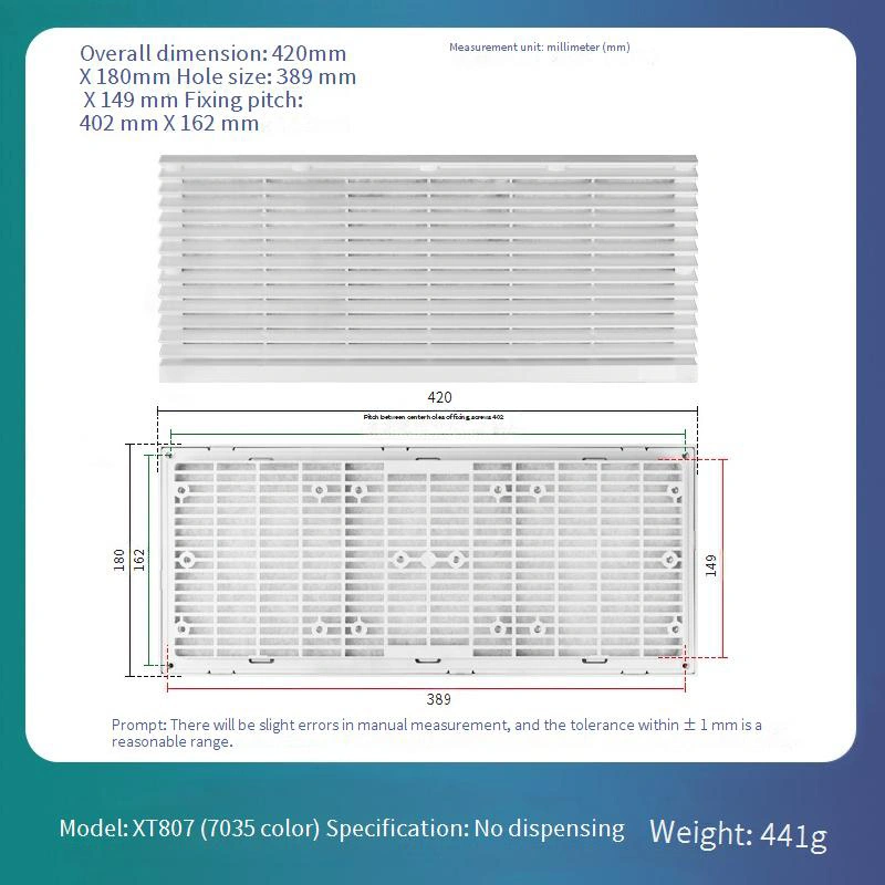 Се одликува со заменливиот дизајн на филтер за филтрирање за лесно дневно одржување и замена, значително намалување на долгорочните трошоци за работа. Структурата на рамката е достапна во стандардна боја на бело-сива 7035. Тој е конструиран од ABS материјал кој нуди одличен отпор на деформација, обезбедувајќи долгорочна стабилност.