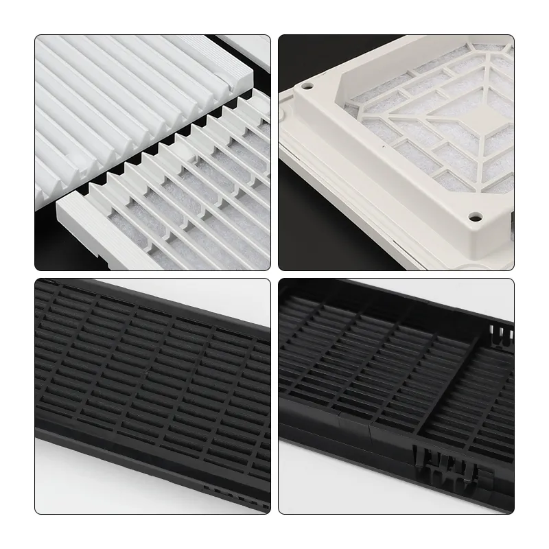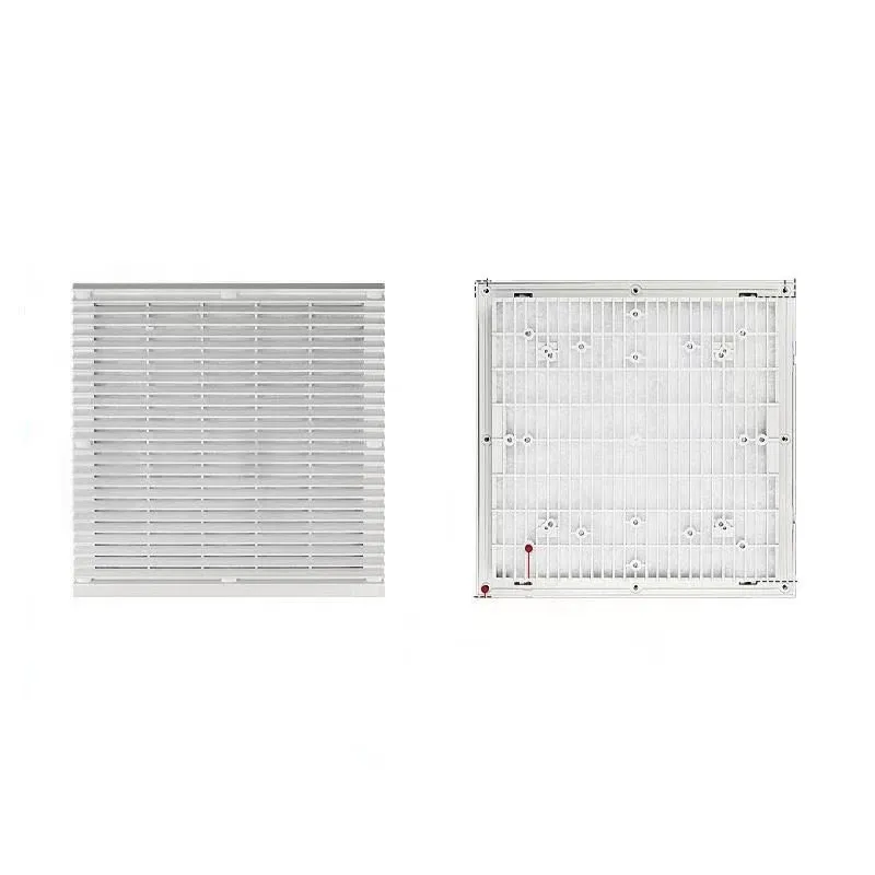 Структурата на решетката и слојот на филтерот им овозможуваат на решетките за вентилација ефикасно да ги спречат надворешните загадувачи да влезат во внатрешноста на опремата, обезбедувајќи безбедно и нормално работење. Произведен од ABS материјал, овој производ обезбедува одлична отпорност на корозија и структурна јачина.